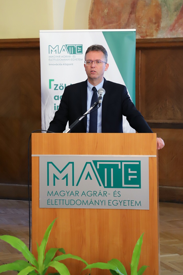 Dr. Gyuricza Csaba rektor köszöntőbeszédében rámutatott, hogy a közel három éve megalakult MATE óriási innovációs potenciállal rendelkezik, főként azért, mert az elmúlt években kicsúcsosodó globális problémák következtében rendkívüli módon felértékelődtek az agrár- és élelmiszeripari innovációk.