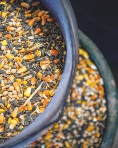 Mivel a cinkegolyó, madárkalács, gyümölcs önmagukban is kitehetők, ha úgy vesszük, ezek külön blokkot alkothatnak, tehermentesítve a többi etetőt. Ha jó helyre akasztjuk, sok más faj is tud élni a kínálkozó lehetőséggel, nemcsak az akrobata cinegék. Ötletes és hasznos lehet oly módon kiakasztani, hogy valami védje az ennivalót felülről, például egy kis tető virágcserépből. Akinek van kertje, és meggyűjti a saját termesztésű magvait, készíthet a „madarainak” saját magkeveréket, illetve finom madárcsemegét, ahogy rögvest látni fogjuk. Az apróbb magvak esetén kifejezetten javasolható ez a módszer.