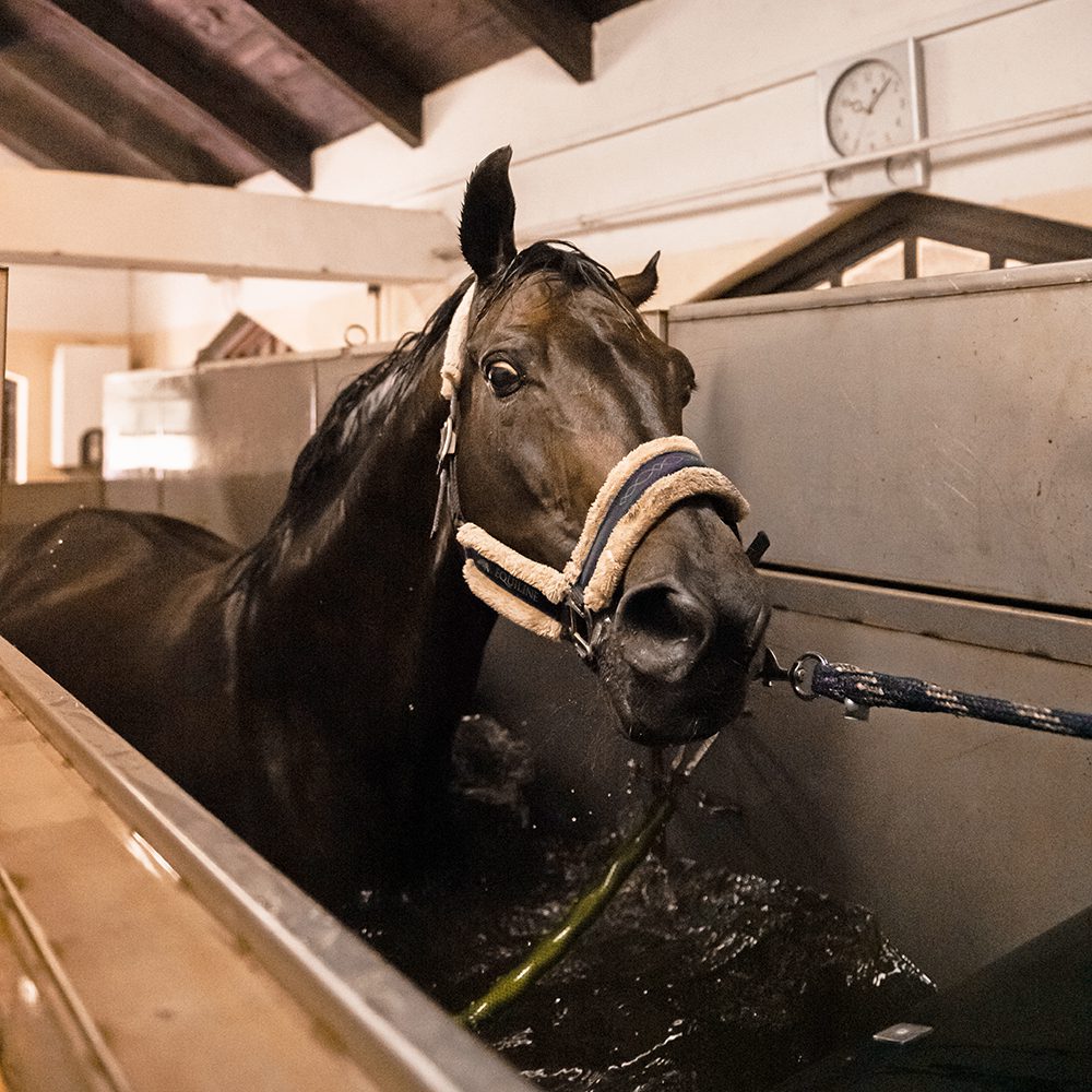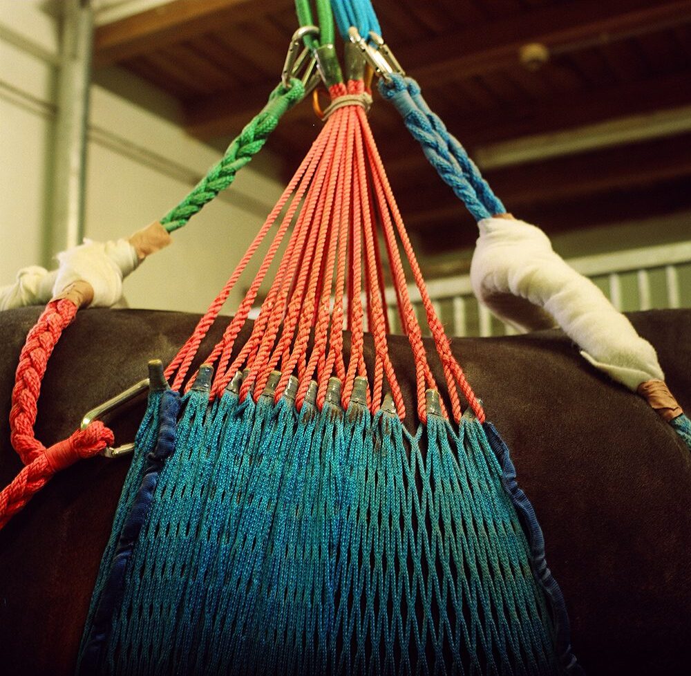 Dr. Bodó Gábor fogadta őket Üllőn a nagyállatklinikán, bevezették a lovat egy szeparált boxba, ahol felfüggesztőháló és csörlő várta. A zürichi egyetemen fejlesztették ezt a lógatóhálót, amivel tehermentesíteni, illetve pihentetni tudják a sérült végtagú lovat, elég újkeletű dolognak számított itthon, Castanio volt a második ló, akinél alkalmazták.