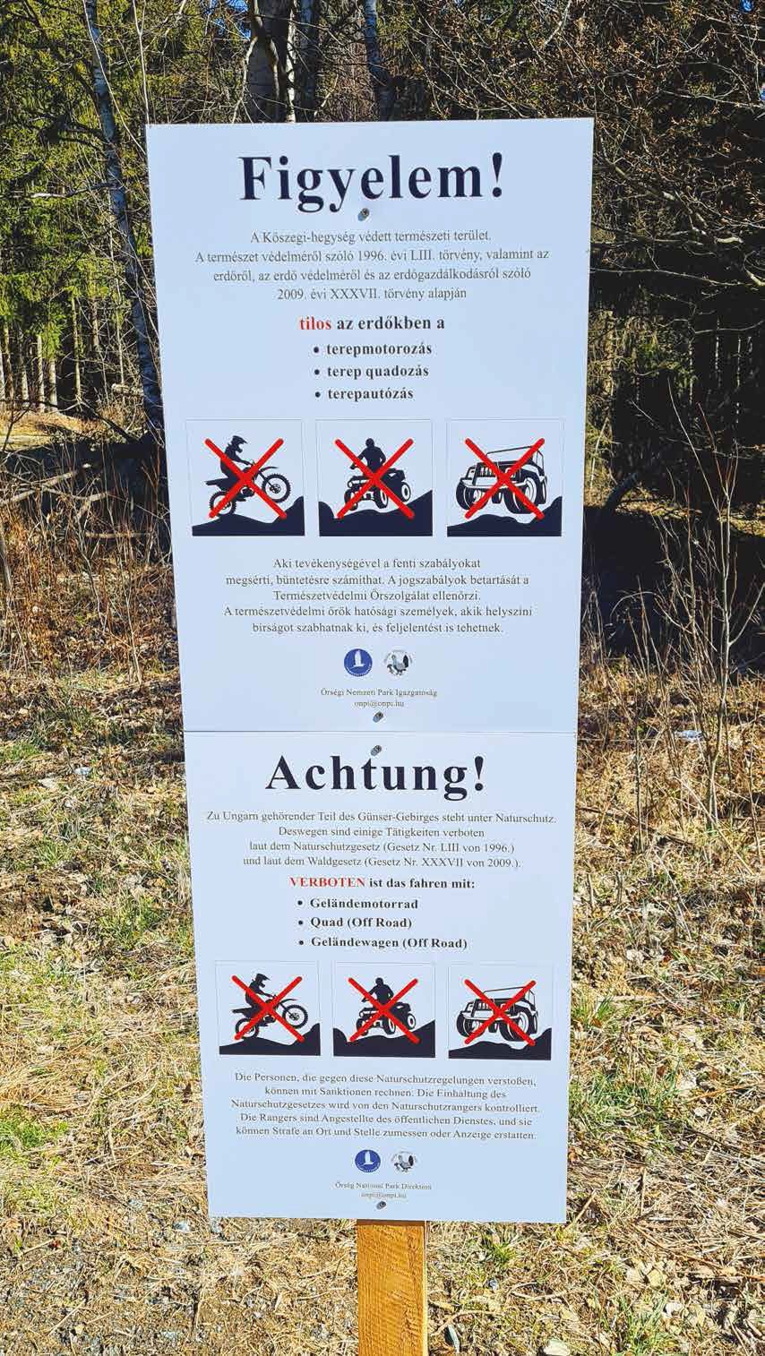 A Kőszegi-hegység védett természeti terület és része a Natura2000-hálózatnak, ahol törvény tiltja a terepmotorozást, -quadozást, -autózást – erre és a szabályszegők szankcionálására tábla is figyelmeztet több ponton. Itt leginkább a kerékpáros lejtőzés vagy downhill szabdalja fel a talajt. Az erdészeti magánutakon és a kijelölt kerékpárutakon járhatják be a hegységet a túrabiciklisek. A tapasztalat szerint azonban sokak inkább keményebb élményekre hajtanak, és a területet behálózó illegális pályákat használják, veszélyeztetve a saját testi épségüket, valamint a szabályosan, kijelölt úton kerekezőket vagy gyalogosan kirándulókat azzal, hogy fentről nagy sebességgel érkezve keresztezik útjukat.
