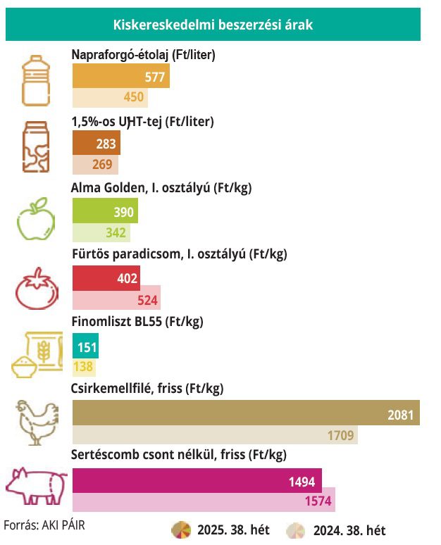 Az AKI PÁIR adatai szerint Magyarországon a nyers tej országos termelői átlagára 198,67 forint/kilogramm volt 2025 augusztusában.