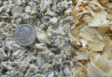- faforgács – elterjedt, főleg puhafa forgácsát használják, viszonylag olcsón lehet hozzáférni, azonban durva felülete hajlamos mikrosebeket ejteni az állat lábán, így a talpfekély kialakulása nagy mértékben megnő;