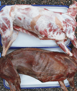Emlősökben az egyetlen ilyen faj a Kínában honos Lanping fekete csontú juh (Lanping Black-Boned Sheep – LPB), melynek húsa, belső szervei is feketék. A fajta rendkívül ritka, becslések szerint néhány ezer egyed alkotja az állományt, és a genetikai megőrzése kiemelt cél a helyi tenyésztési programokban. A fekete hús és csontok genetikai oka a ERBB4 és ROR1 gének túlzott expressziója, amelyek a melaninszintézist szabályozzák, így náluk ennek a mutációnak az eredménye a különleges szín.