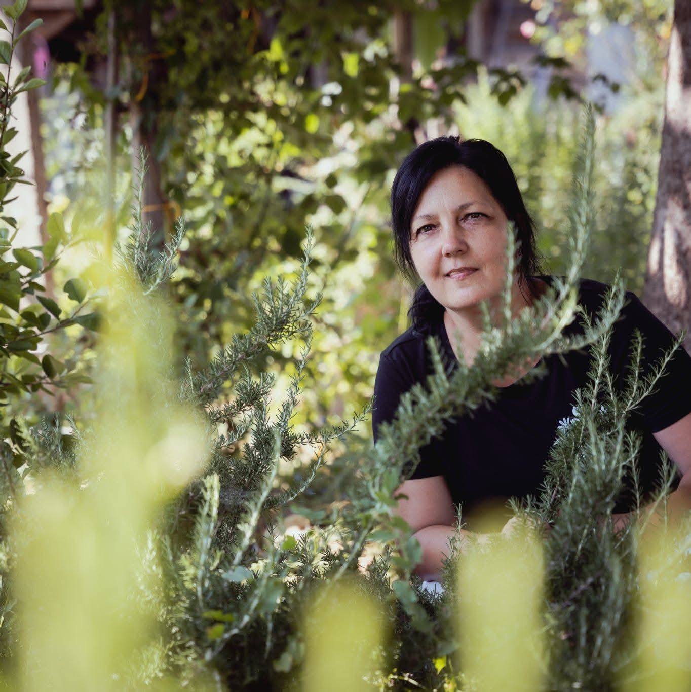 Kertjében csaknem ötven különböző gyógy- és fűszernövényfaj található, csak mentából felsorolt nyolc fajt és fajtát, amelyek közül a tűző napon is virít az ízesítőül használható ananászmenta, míg az inkább gyógyhatású fodor- és borsmenta kevésbé strapabíró. Ezenkívül citromfű, kakukkfű, rozmaring, zsálya és három galaj a sztár az évelők között. Jól tűri az aszályt a macskamenta, amely emésztési gondokra, gyomorsav-túltengésre és reflux ellen ajánlott. Keresett az egynyári üröm, amely számos megbetegedésnél alkalmazható, a maláriának is ellenszere.