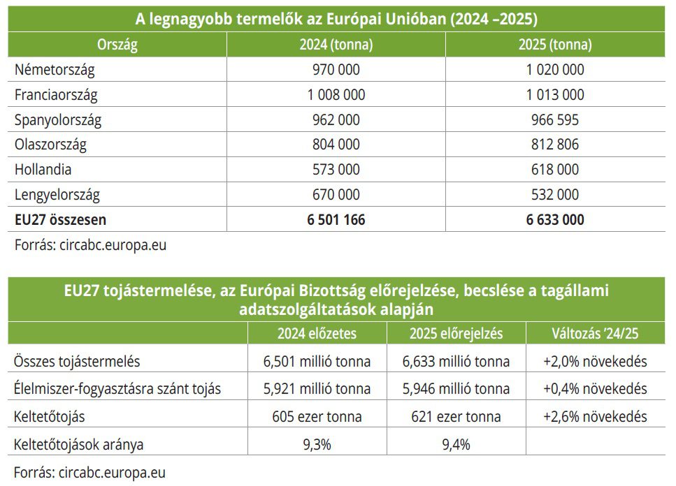 Az EU legtöbb tojást fogyasztó tagállamai Németország (950 000 tonna), Franciaország (947 000 tonna), Spanyolország (902 000 tonna), Olaszország (760 257 tonna), Hollandia (540 000 tonna) és Lengyelország (417 000 tonna).