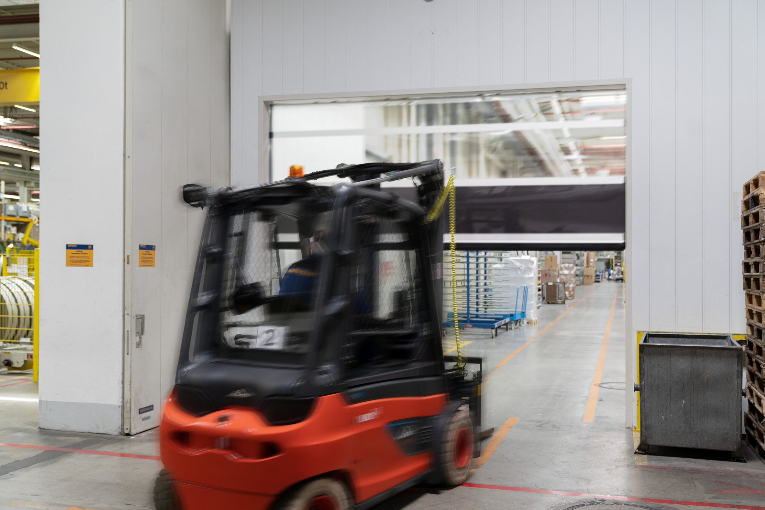 A kapu másodpercenként több mint négy métert nyílik függőlegesen, és körülbelül egy métert záródik, ami lehetővé teszi, hogy a targoncák vagy gyalogos forgalom akadálytalanul haladhasson. Ez nemcsak időt takarít meg, hanem csökkenti az ütközésveszélyt is – a kapu gyakorlatilag már teljesen nyitva van, mire a jármű eléri.
