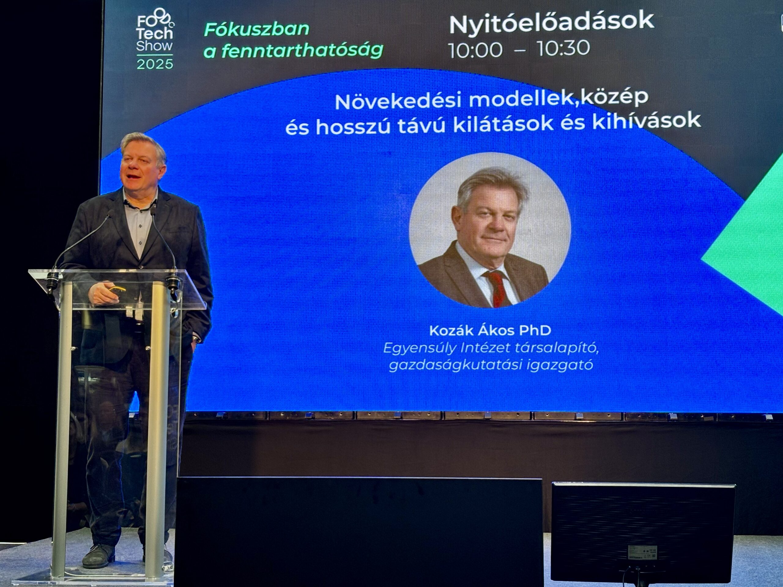 Dr. Kozák Ákos, az Egyensúly Intézet társalapítója, gazdaságkutatási igazgatója Magyarország gazdasági helyzetéről tartott egy igen kompakt előadást, melynek a fő konklúziója az, hogy: „Magyarország középmezőnyben ragadt, nem tudta kihasználni a képességeit és a benne rejlő potenciálját.” Két dolog, amiben jó eredményeket értünk el, az a foglalkoztatottság és a munkanélküliségi ráta. Világgazdasági kitekintésében a lassuló globális növekedésről, a vegyes inflációs kilátásokról, a még később jelentkező vámháború következményeiről beszélt. A jövőre vonatkozóan lassú GDP növekedést, csökkenő inflációt és lassan bővülő fogyasztást prognosztizált.