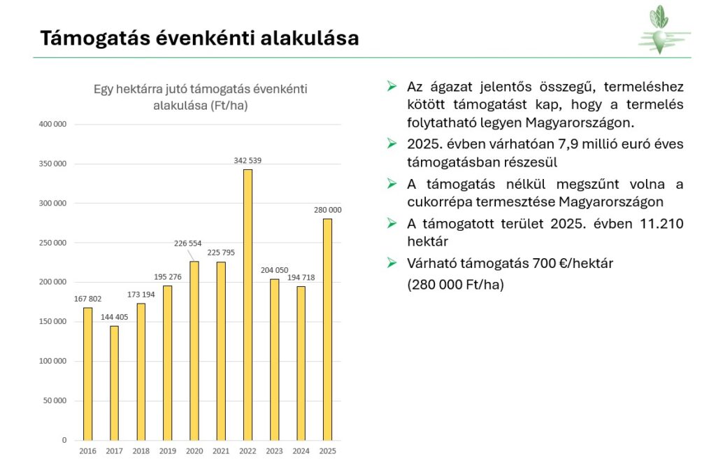 Nem csak az idei év, hanem az egész ágazat a legnagyobb kihívása a versenyképesség hiánya. A mezőgazdaság szereplőire általánosan igaz, de a cukorrépa termesztőkre fokozottan érvényes, hogy nem tudtak annyira megerősödni, hogy az alacsony cukorár miatti nehéz körülmények között fent tudják tartani a cukorrépa termelést. Az elmúlt, illetve az idei évben és várhatóan a 2026. évi cukorrépaár nem fogja fedezni a termelési költségeket. A központi támogatás sokat segít, de az alacsony árak és az alacsony hozamok alapján kevés az árbevétel. A cukorrépatermelő számol, ha más növényből magasabb az egy hektáron előállított jövedelem, akkor az veti.