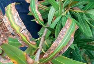 Hazánkban is egyre jobban terjed a melegigényes Pseudomonas baktérium, amely a leandergolyvát okoz. A fiatal növények ágain és levelein a fertőzés hatására jellegzetes szemölcsszerű daganatok jelennek meg, ezért leánderráknak is nevezik.. A beteg növényi részeket folyamatosan távolítsuk el. A növényeket többször permetezzük réztartalmú gombaölő szerrel. Nagyobb a baj, ha a leander leveleinek szélén húzódó sárguló, száradó sávot észlelünk, mert az a legveszélyesebb karantén kórokozó baktérium, a Xylella fastidiosa jelenlétére utal. A levelek száradása csak a kezdeti tünet, később az ágak is elhalnak és a növény elpusztul.