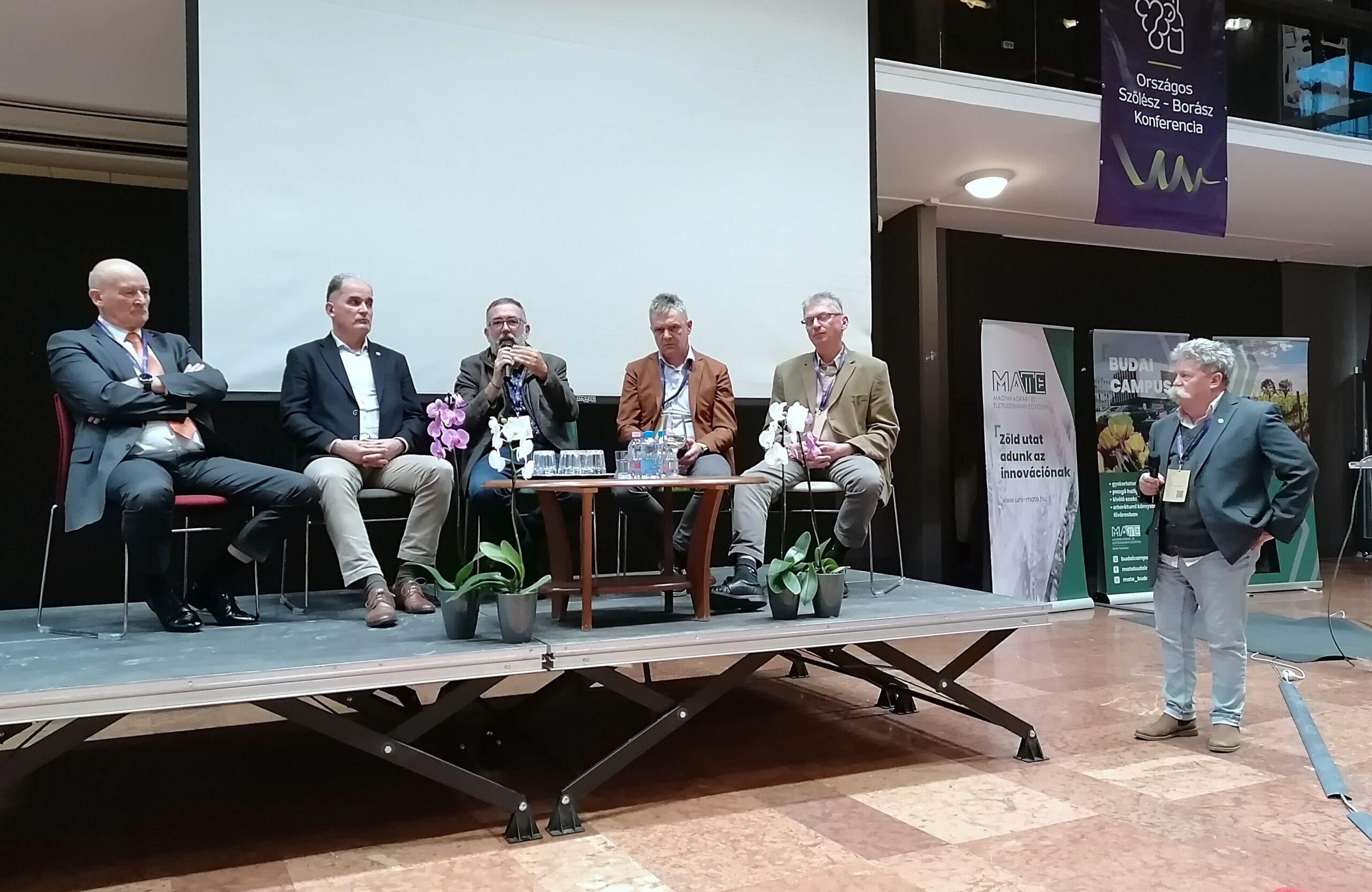 A konferencia témába vágó szakmai előadásai után Viniczai Sándor kollégánk vezette azt a kerekasztal-beszélgetést, ahol a további tennivalókról esett szó, Frittmann János, a Hegyközségek Nemzeti Tanácsa elnöke, Molnár Péter, a Tokaji Borvidék Hegyközségi Tanácsa elnöke, Molnár Ákos, a Magyar Szőlőszaporítóanyag Termesztők Szövetsége elnöke, Tarsoly Róbert, a Zalai Borvidék Hegyközségi Tanácsa elnöke és Pernesz György, a Nébih Kertészeti Fajtakísérleti Osztály vezetője részvételével.