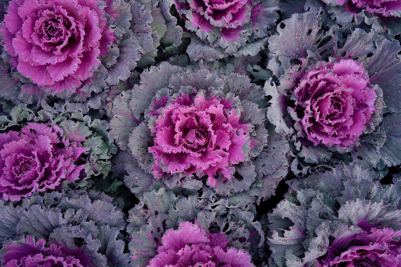 Népszerű a díszkáposzta (Brassica oleracea) is, amelynek fehér, rózsaszín, lila fodros levelei a hideg hatására csak még intenzívebbé válnak és balkonládákban is gyönyörű.