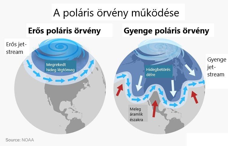 Novemberre már létrejön egy több mint 10 ezer kilométer átmérőjű, 30 kilométer vastagságú hideg örvény, amely bolygónk leghatalmasabb időjárási képződménye. Amikor ez az örvény erős, akkor a hideg levegő nagy része a sarkvidéken marad, így a mérsékelt égöv telei általában enyhébbek.
