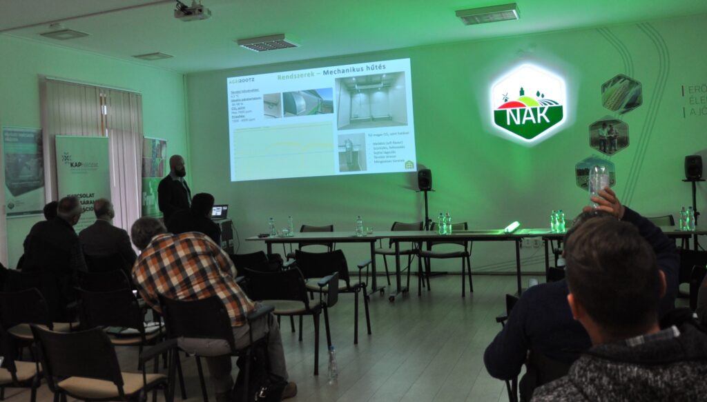 Notterpek T. Jácint, az Agrirootz képviseletében kiemelte a betakarítást követő első 12-16 nap a legkritikusabb időszak a tárolt zöldségek és gyümölcsök életében. Ebben az időszakban van szükség a legnagyobb és legprecízebb hűtési- és szellőztetési folyamatok vezérlésére és egyensúlyban tartására. A cégük által kínált költség- és energiahatékony tárolási megoldások tervezésén és kivitelezésén túl a RootzControl saját fejlesztésű szoftvere már magyar nyelven is elérhető a gazdálkodók részére.