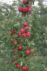 Az Idared-, Pinova-, Gala-klónok tőtávolsága lehet 60 centiméter körüli. A sortávolság 3,5 méter. A sűrű telepítés előnye, hogy kevesebb szedési menettel lehet betakarítani, illetve egy fán kisebb a terhelés, egyenletesebb a hozam és a gyümölcsminőség.