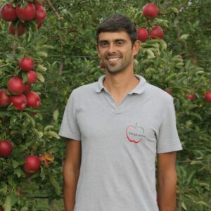 Az ültetvény több mint 13 hektárja termő alma, a fajták körülbelül arányosan oszlanak meg benne. Elsőként a Gala érik, aminek egy részét leváltják, több okból is. Már nincs meg az az árelőnye, ami tíz éve, egész évben kapható, gyakorlatilag tömegalma lett belőle, és ehhez viszont nem terem eleget. Negyven tonnás hozamával és kisebb gyümölcsével már kevésbé éri meg foglalkozni vele, ezért egy részét Granny Smith-re cserélik.