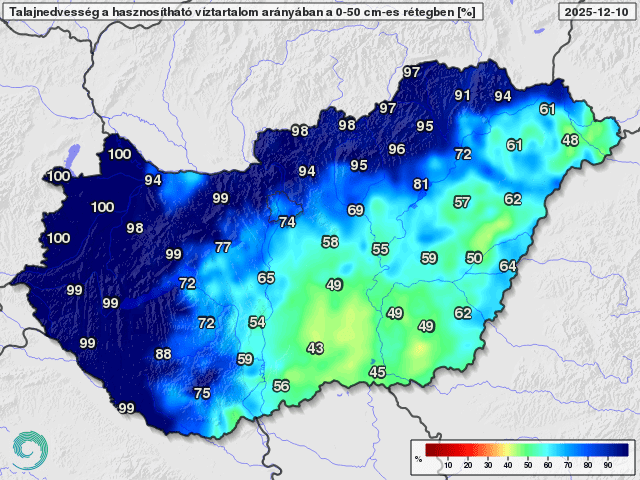 A fél méternél mélyebb talajrétegbe azonban csak az északi és nyugati országrészekben jutott számottevő nedvesség, az Alföldön és a Dunántúl keleti felén még alig töltődtek a talajok, az Alföldön a felső egy méteres réteg vízhiánya a telítettséghez képest még mindig meghaladja a 100 mm-t.