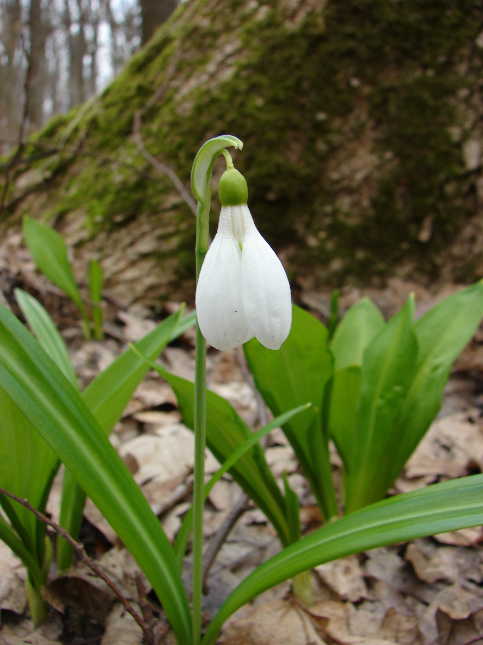 A harmadik kihajtási típusra mutat példát a G. woronowii, vagyis a széleslevelű hóvirág. Ennek a levelei a rügyben még összecsavarodva fejlődnek ki, úgy kell kibontakozniuk a kihajtáskor. A Nyugat-Kaukázusból, Törökország északkeleti vidékeiről és a Fekete tenger keleti partvidékéről származó növény a legnagyobb termetű, 25-35 cm magas, fényes zöld levelei 1,5-2 cm szélesek és több mint egy arasznyi hosszúak. Kevésbé hidegtűrő, mint a már említett hóvirágok, igaz, ez manapság egyre kevésbé fontos szempont Magyarországon.