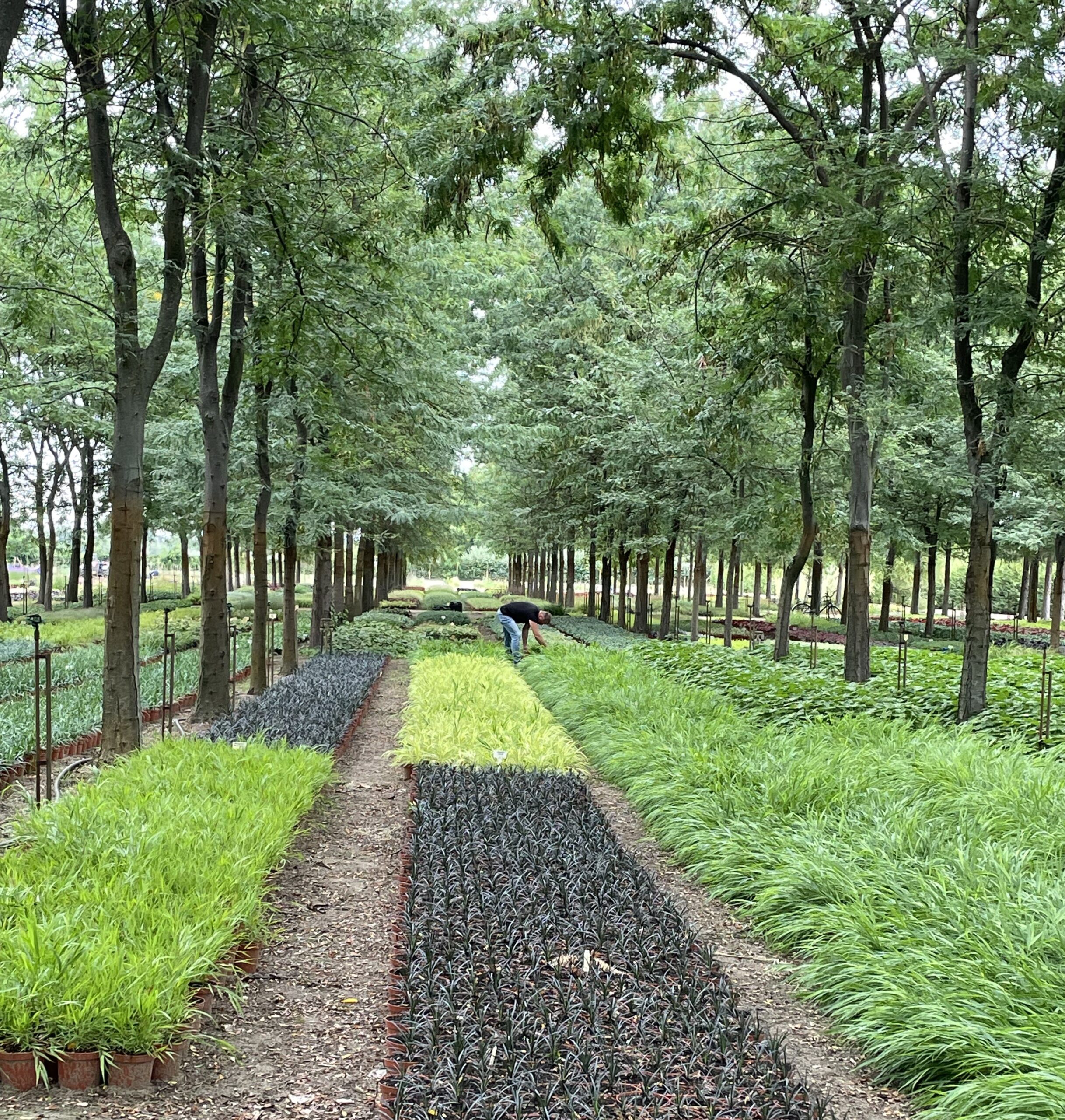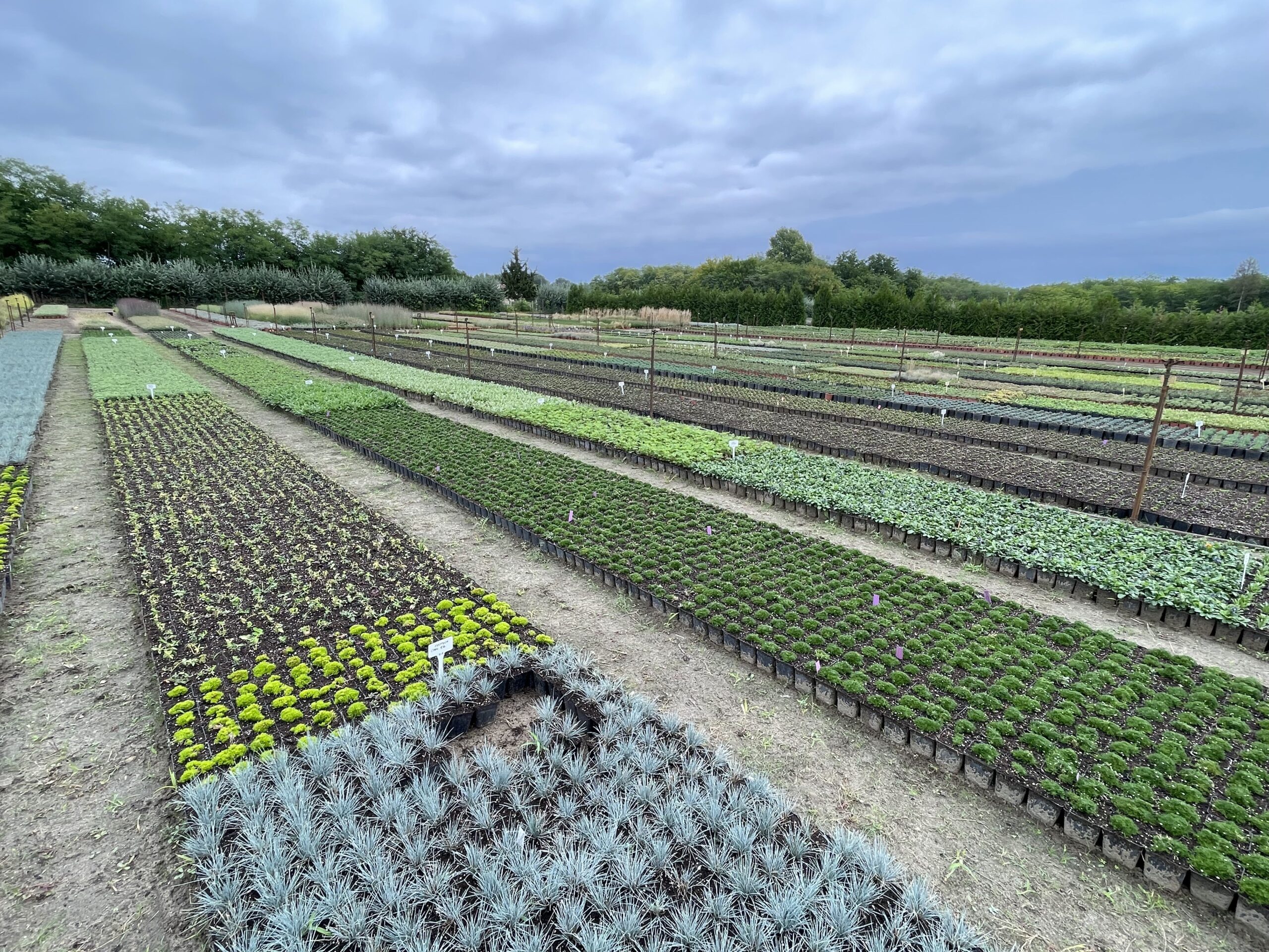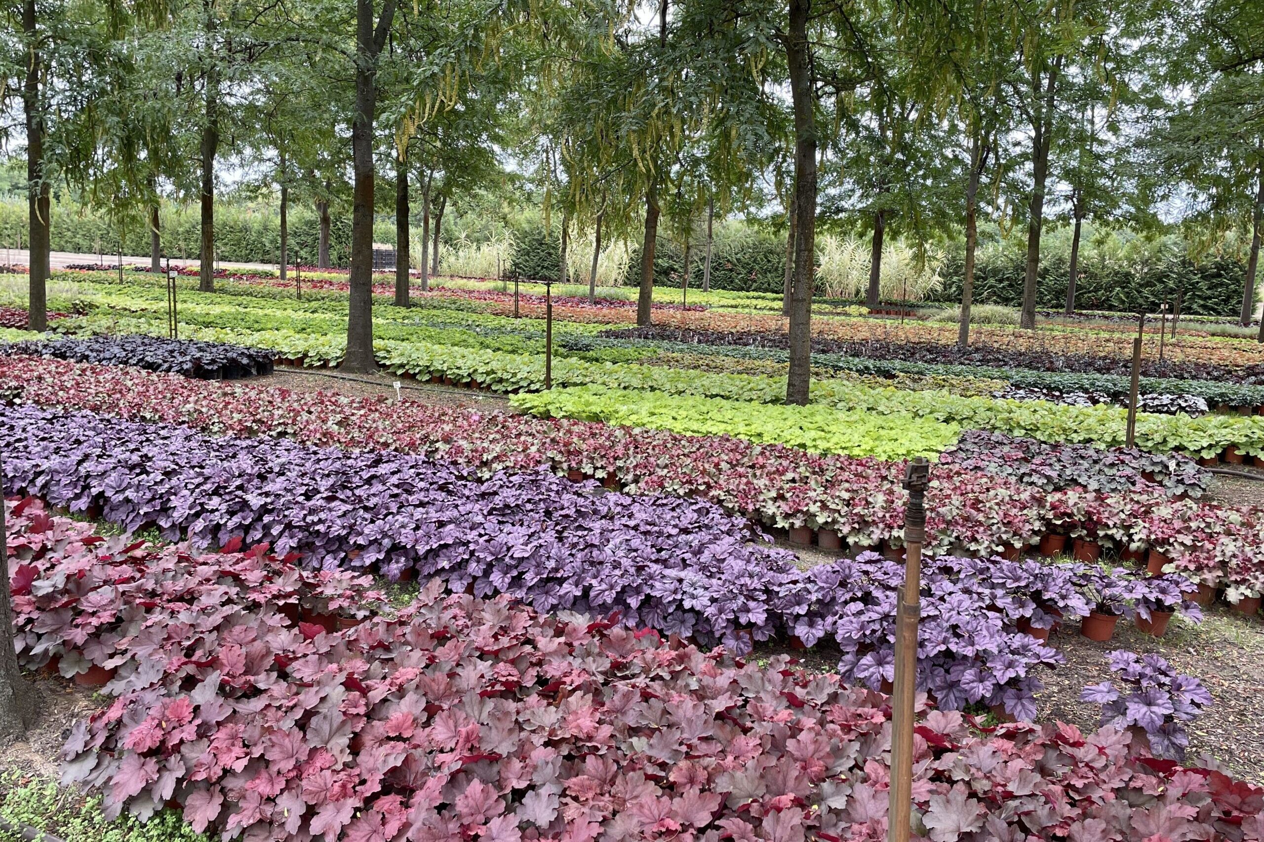 A konténertelepen elhelyezett növényeket fény- és vízigény szerint csoportosítják. Azonos blokkokban helyezik el a hasonló igényű növényeket. Külön kapnak helyet a vízi- és tóparti növények, íriszek, valamint a szárazságtűrő, xerofil növények, így a divatos varjúhájak (Sedum-fajták) és a Yucca-anyatelep. Az árnyékkedvelőket laza árnyékot adó faültetvények alatt nevelik.