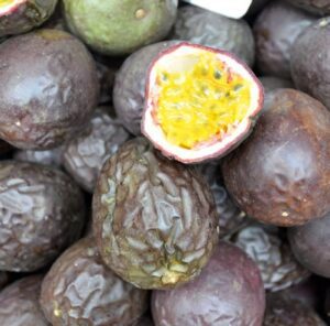 A termés belsejében a magok a fehér, vattaszerű, száraz termésfal 4 mm-es szemölcseihez tapadnak. A vastag magköpennyel körülvett magok közét sárgás narancsszínű, kocsonyás, sűrűn folyós anyag, pulpa tölti ki, mely rendkívül zamatos és illatos, jó ízű. Brazília hegyi esőerdeiből származik. Sokfelé termesztik, bíborlila termésű változatát a szubtrópusokon és a hegyvidékeken, sárga termésű változatát pedig a trópusi síkvidékeken.