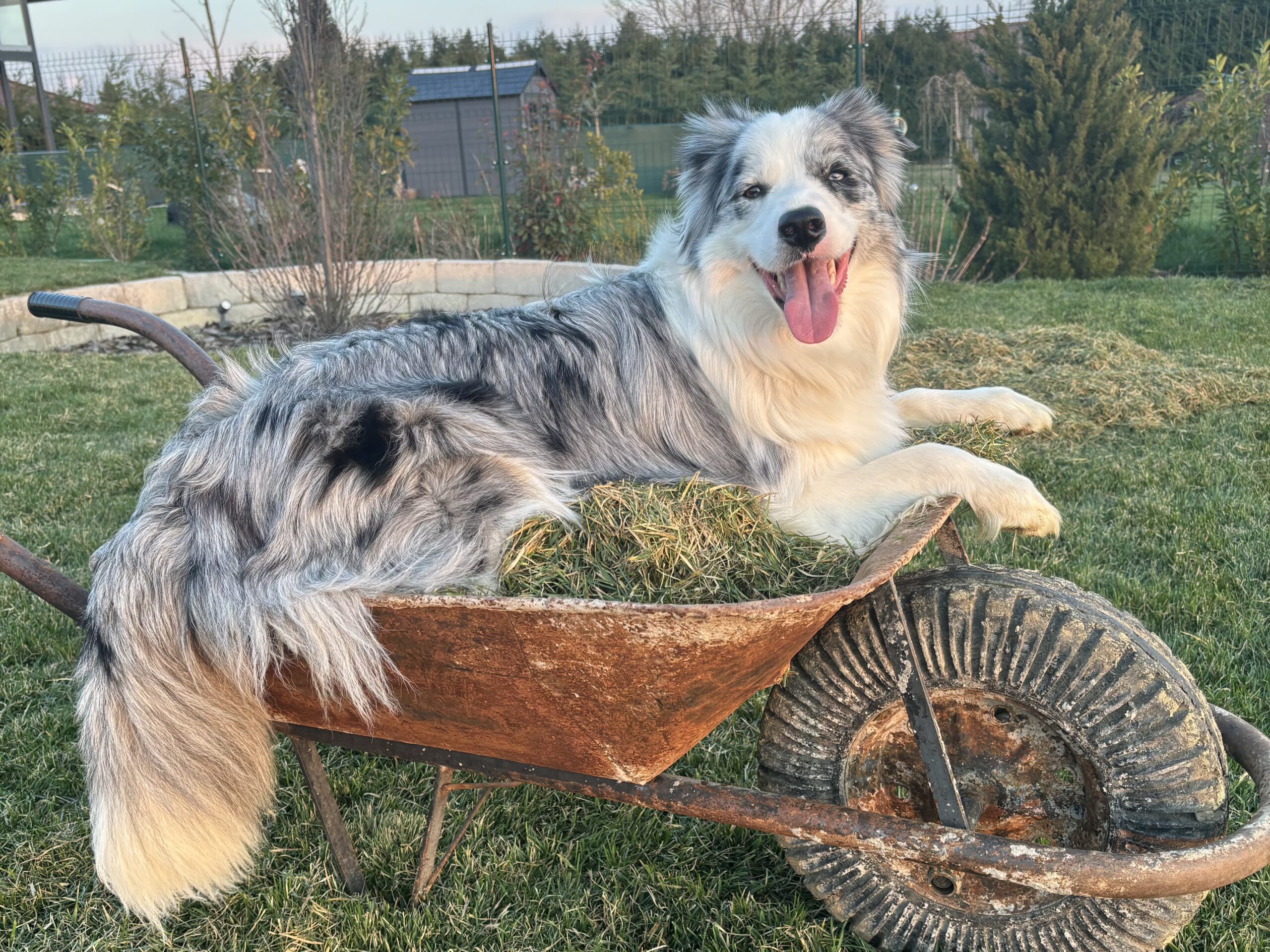 Jó ha van segítség a szellőztetéshez, így nem fújja ki a szél a füvet a talicskából.