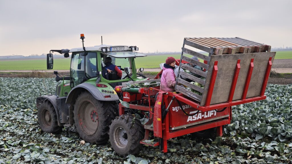 A betakarítógép megvásárlása mellett is elsősorban azért döntöttek tavaly áprilisban, mert novembertől egy hónap alatt arányaiban nagyobb területen kell felszedni a káposztát, mint az év többi részében. Ehhez a meglévő 2-3 mellé további 4-5 alkalmi munkavállalóra lett volna szükség, és ez nem kis kihívás. Ezt váltották ki az ASA-lift MC-1010C félig függesztett káposztabetakarító géppel.