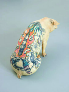 Magyarán állatot tetoválni megjelölési céllal engedélyezett, dekorációs megfontolásból szigorúan tilos. A Távol-Keleten például nagy divatja van az akváriumi halak „díszítésének”, mely során a gerinc mentén több helyen megböködik és festékat juttatnak a halakba, hogy fluoreszkáljának a sötétben. A sertések sem ússzák meg az elfajzott emberi elme degeneráltságának határtalanságát, több amerikai tetoválómester is disznóháton nézi meg, hogyan nézne ki a valóságban egy nagyobb munkája, mivel a sertés bőre nagyon hasonlóan viselkedik festékanyag-beinjektálás hatására, mint az emberé.