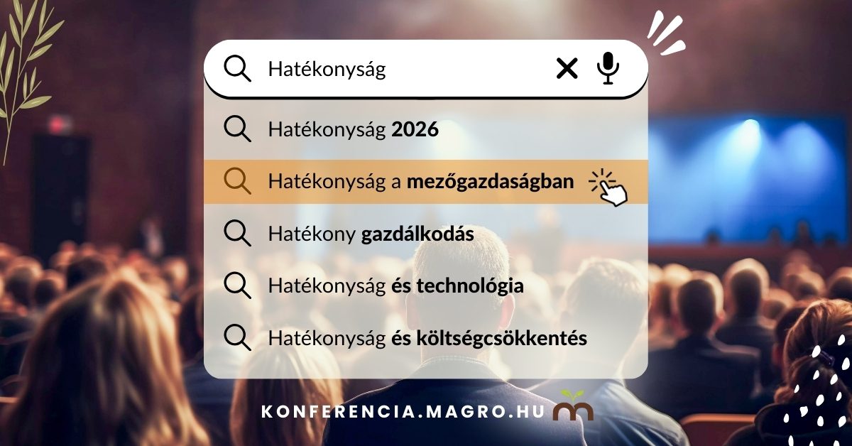 A HATÉKONYSÁG 2026 Konferencia és Kiállítás nem csupán elméleti képzést, hanem a gyakorlatban azonnal alkalmazható stratégiát kínál a növénytermesztők, állattenyésztők és gazdaságvezetők számára. Az eseményt a Magro.hu szervezi, helyszínadó partnerével, a Debreceni Egyetem agrár karával közösen. Nézze meg a programot!