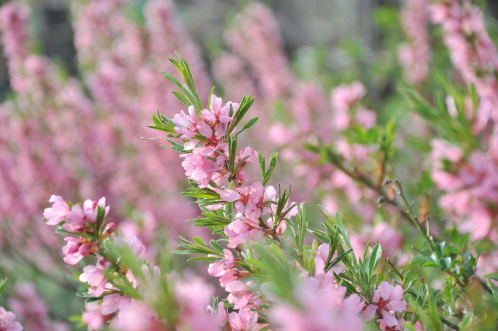 A törpe mandula (Amygdalus nana, újabb rendszertan szerint Prunus tenella) az egyik legkorábban virágzó cserjénk. Már március végén vagy április elején elborítják az ágait a sötétvörös bimbókból kipattanó, élénkrózsaszín virágok. Ilyenkor a bokor egyetlen nagy rózsaszín felhőnek tűnik, ami a szürke tél után frissítő látvány nyújt. Sajnos a virágzása nem tart sokáig, utána, csak zöld cserjefoltként funkcionál. Érdemes vegyesen ültetni törpe rózsával, levendulával.