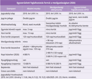 A 2026-os szabályozás összességében továbbra is rugalmas keretet biztosít a mezőgazdasági kistermelők számára az időszakos munkaerő legális foglalkoztatásához, ugyanakkor a napkorlátok és a foglalkoztatás jogcímének pontos megválasztása kiemelt jelentőségű.