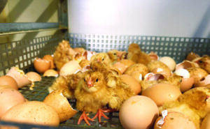 Elérkezünk a baromfihoz, ahol naposcsibék, vágóállatok, szülőpárállomány található a különböző részlegekben. A tojásokat helyben keltetik és nevelik fel a csirkéket. A csirkeólak kifutóval rendelkeznek, így a madaraknak van helyük kapirgálni, 10 hetes korban kerülnek vágásra a húscsirkék, tehát az ipari termeléshez képest lassú nevelésűek. Hetente, hatósági állatorvossal történő minősítést követően, helyben történnek a vágások, a húsok pedig frissen elérhetők a helyi üzletben a tojásokkal együtt.