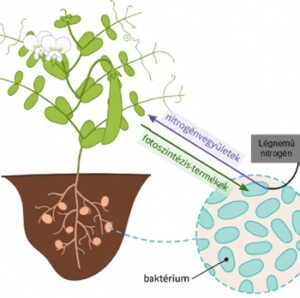 Ezek előállítására viszont a Rhizobium nem képes, hiszen a földfelszín alatti életteréből kifolyólag nem rendelkezik a fotoszintézishez nélkülözhetetlen zöld színanyaggal, nem áll kapcsolatban a Nappal és nem is tudja hasznosítani annak fényenergiáját. Ennek a kapcsolatnak a legfontosabb lépéseit mutatja be a 4. ábra.