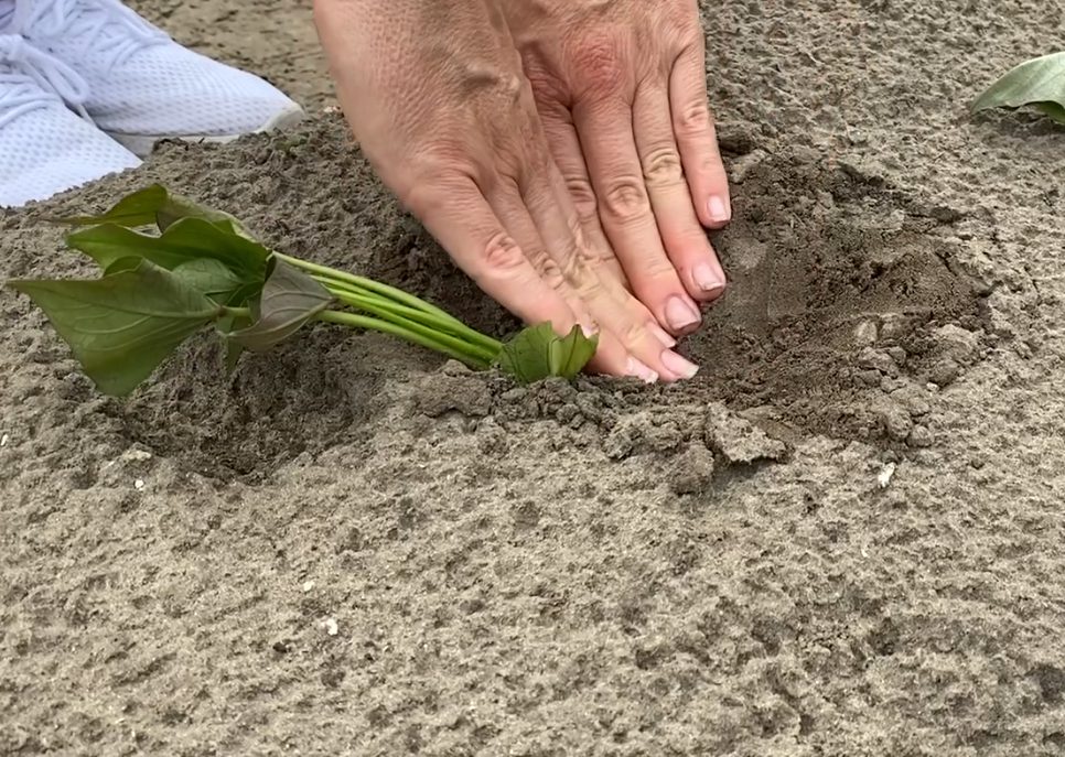 Ültetés: Az édesburgonya rendkívül érzékeny a hidegre. A fejlődése 10 °C alatti léghőmérsékleten megáll, a biztonságos ültetéshez pedig legalább 15 °C-os talajhőmérséklet szükséges. Ezért csak a tavaszi fagyok után, általában május 15-e után ültessünk. A dugványok beszerzésekor válasszunk megbízható forrásból származó, 15-30 cm-es leveles hajtásokat. A dugványokat ne függőlegesen, hanem ferdén vagy fektetve helyezzük a földbe.