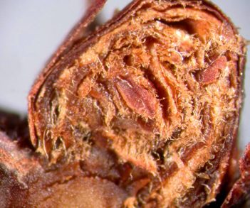 Majd ezután vágjuk át a rügyeket, és azok színéből szintén következtetni tudunk az elfagyás mértékére. A legbiztosabb eredményt a rügyboncolás és a rügyek hajtatása adja.
