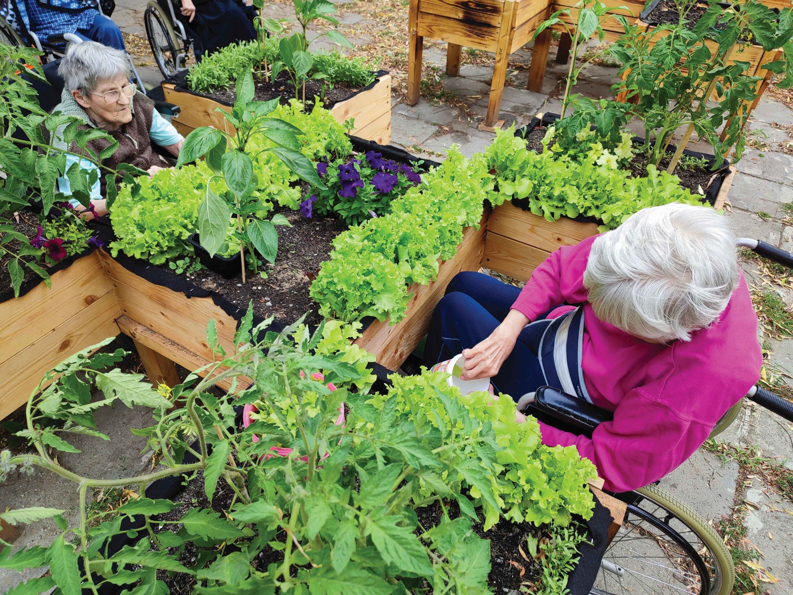 Ezt követi a kerttervezés, amely már kifejezetten ezekre az igényekre épül. A gyakorlatban ez nagyon konkrét döntéseket jelent: milyen szélesek legyenek az ágyások, milyen magasságban helyezkedjenek el, mennyire legyen átlátható a tér, milyen növényeket válasszanak. Egy mozgáskorlátozott csoportnál például elengedhetetlen az akadálymentes megközelítés és az emelt ágyások használata, míg autizmussal élők esetében a túl sok inger kerülése és a jól strukturált, átlátható tér válik hangsúlyossá. Időseknél a biztonság, a stabil kapaszkodók és az egyszerűen végezhető feladatok kerülnek előtérbe. Az idős, esetleg demens embereknél fontos a múlt felidézése, tehát a régi, általuk ismert kultúrákkal kell kezdeni, újdonságokat csak szépen fokozatosan érdemes bevezetni.