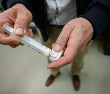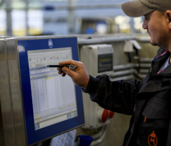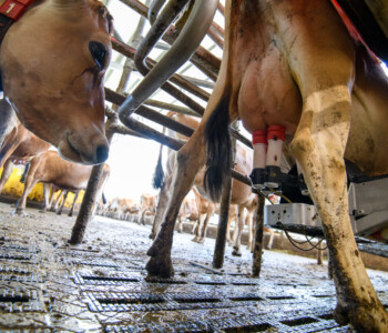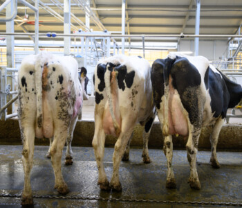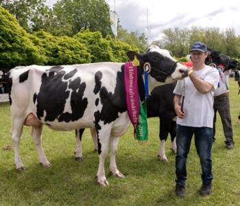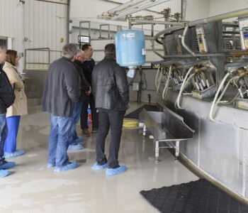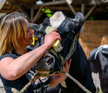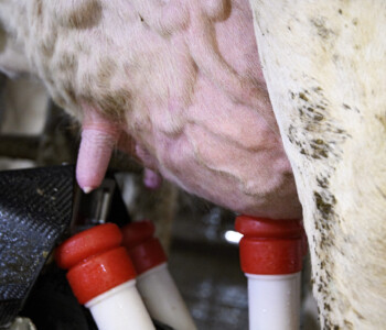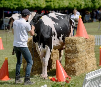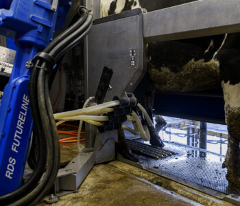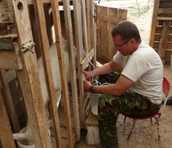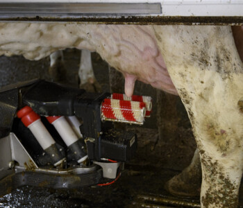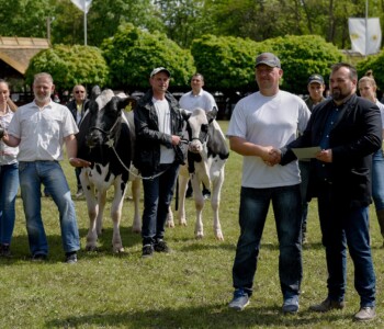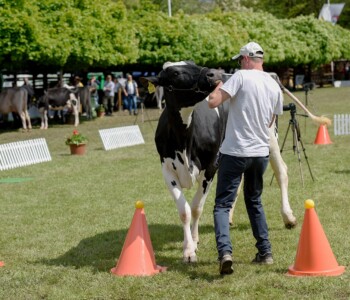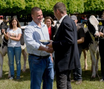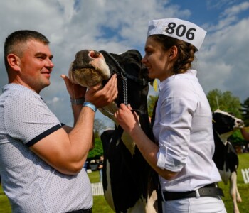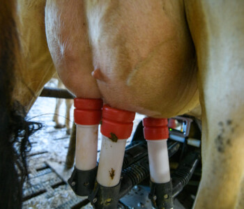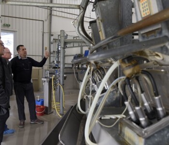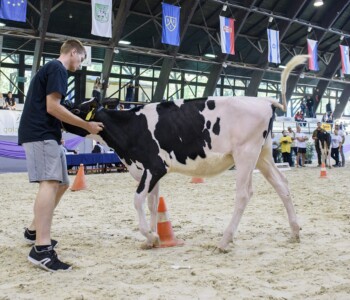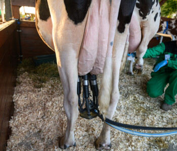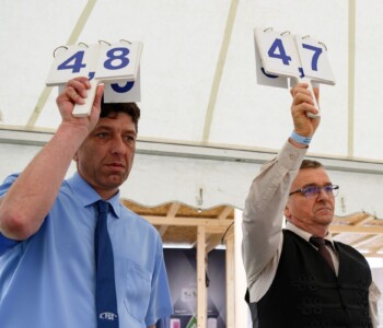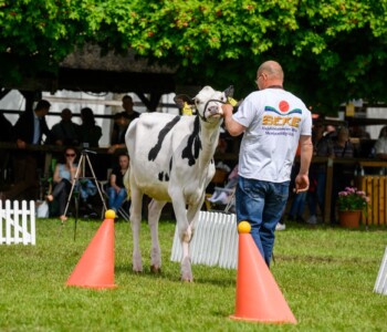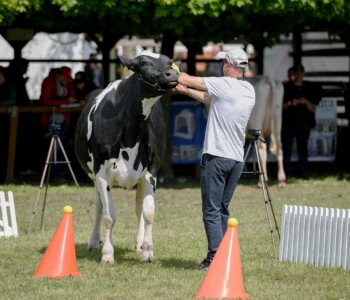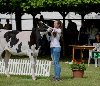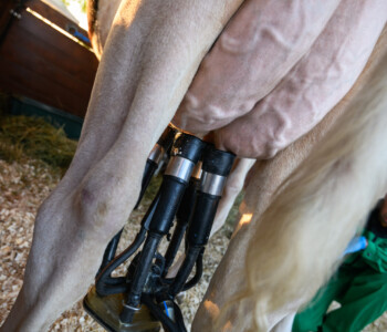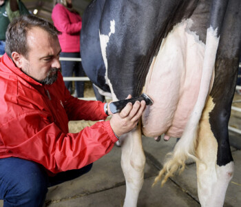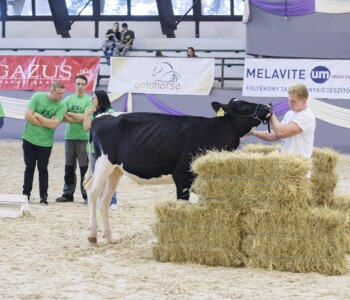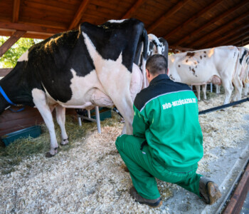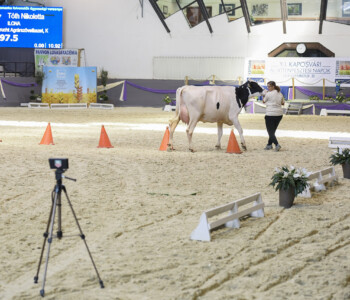 Elsőként a telekgerendási FOR MILK Kft. bajnok Holstein Frízére, Zordra került fel a mobil vákuumos fejőgép, miután a fejőmester megtisztította a tőgyét a verseny idejére felhordott csöpögésgátló anyagtól és mintát fejt a tejből.