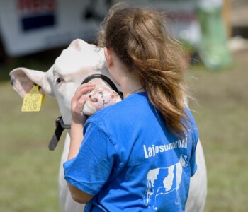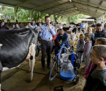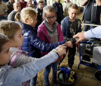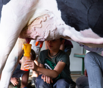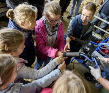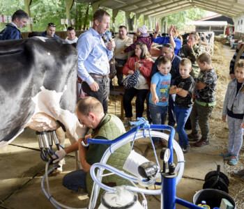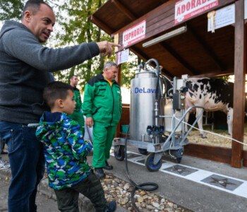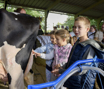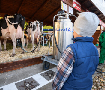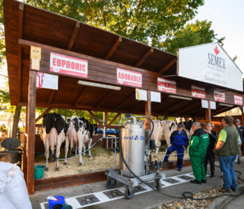 Nehéz lenne megmondani, hogy a gyerekek vagy a kiállított tehenek várták-e jobban a délutáni bemutatófejést a 28. Alföldi Állattenyésztési és Mezőgazda Napokon, az előző években bajnokságot nyert tejelőknek emléket állító „sztárutcában”, a SEMEX Génbank és a DeLaval fejéstechnológia bemutatóhelyén.