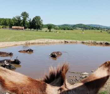 Meghívásra érkeztünk a boldog haszonállatok birodalmába. Csónakkal keltünk át a Faddi-Dunán meglátogatni a Várszeg Szalámi alapanyagául szolgáló kondát és gulyát. Már ez is élmény volt, hát még amikor néhány kíváncsi disznó röfögve futott elénk. Ezt a kalandot mindenkinek érdemes beiktatni, ha a családi gazdaság termékeiből akar vásárolni.